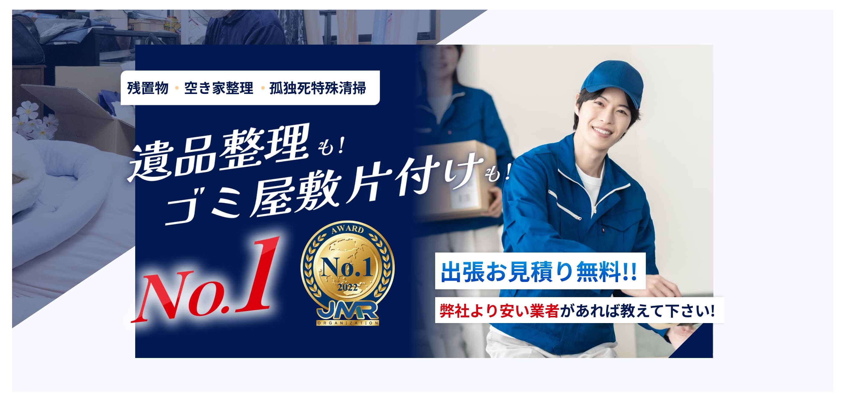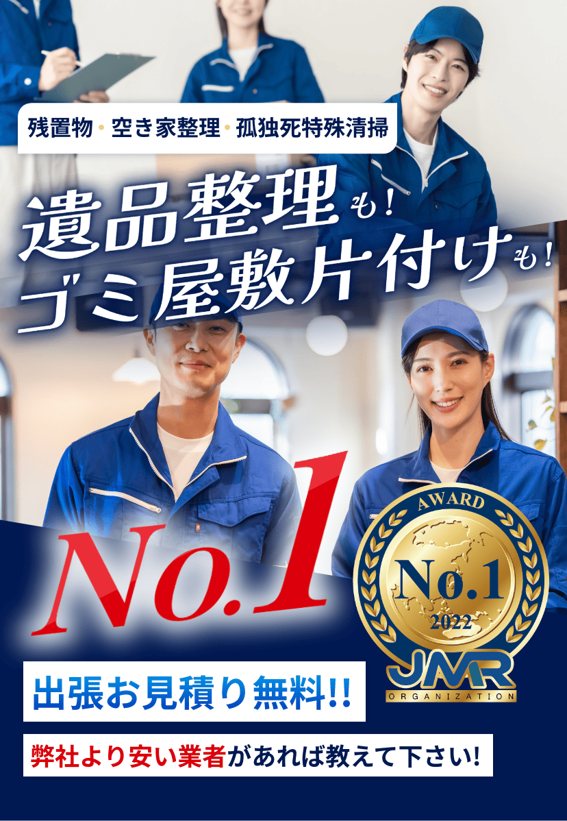 「優良事業者認定」を受けており、高品質かつ安心のサービスを提供しています。業者の中には資格をもたない者もおり、高額請求や不法投棄などのトラブルが発生しています。ぜひ弊社で安心できるサービスをお受けください。 -